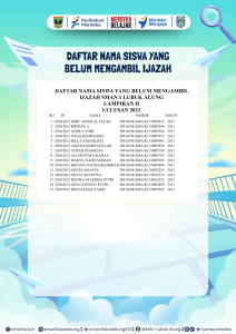 Kepada siswa-siswi SMAN 1 Lubuk Alung yang namanya terlampir, diharapkan untuk mengambil ijazah pada: